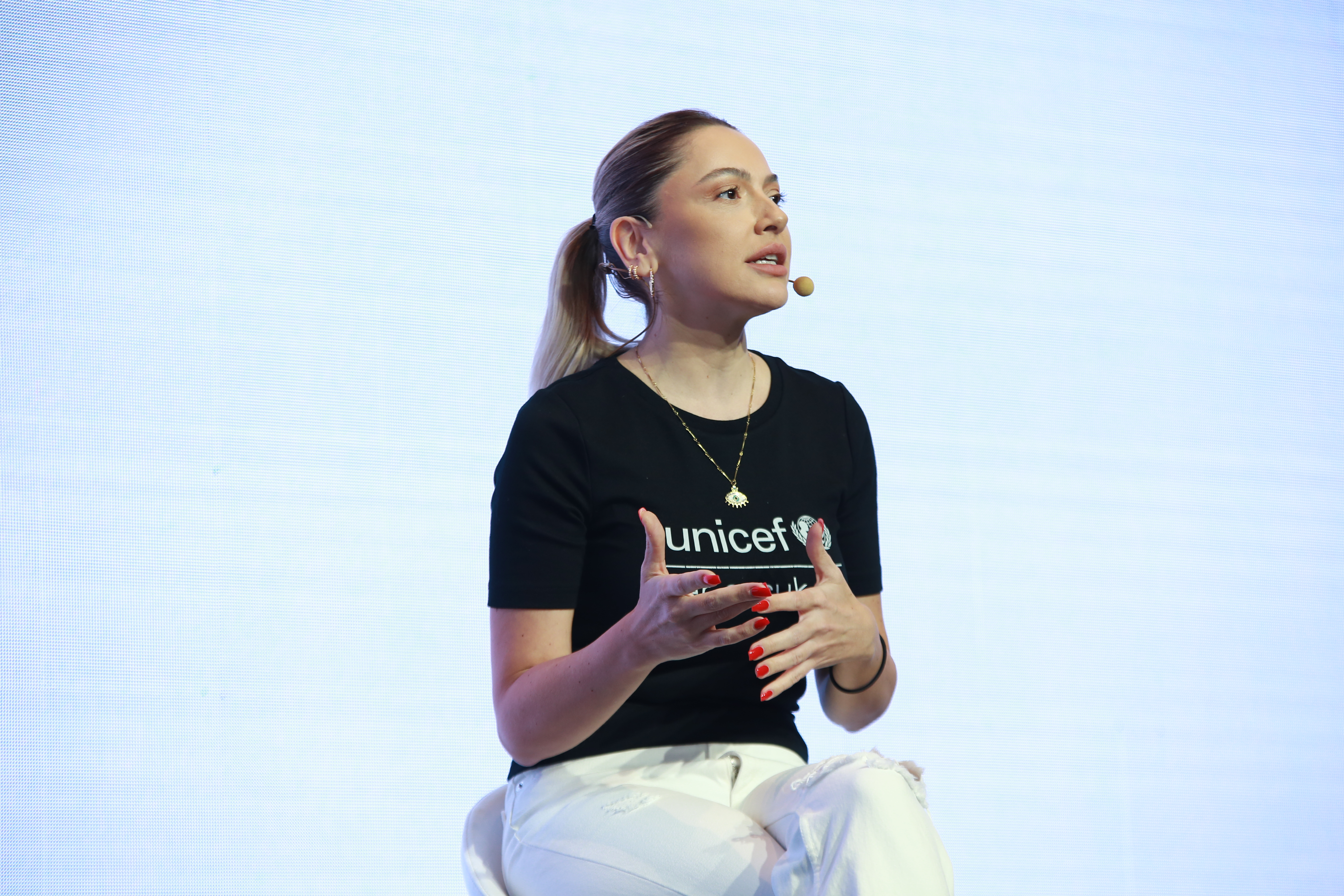 Konferansın son bölümünde sahneye, aynı zamanda UNICEF Türkiye çocuk hakları savunucusu olan ünlü sanatçı Hadise geldi. Toplumsal cinsiyet eşitsizliğinin sadece kız çocuklarını değil toplumdaki herkesi yaşamda geride bıraktığına dikkat çeken Hadise, “Buna izin vermeyelim. Birlikte, toplumsal cinsiyet klişelerini kırabilir, kız çocuklarının hayatta olmak istedikleri kişilere dönüşmelerine ve gelişmelerine destek olabiliriz” dedi.